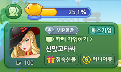 내 정보 : 내가 사용 중인 아바타, 레벨, 별명, 패스 및 카페 가입 상태 등의 확인이 가능합니다.