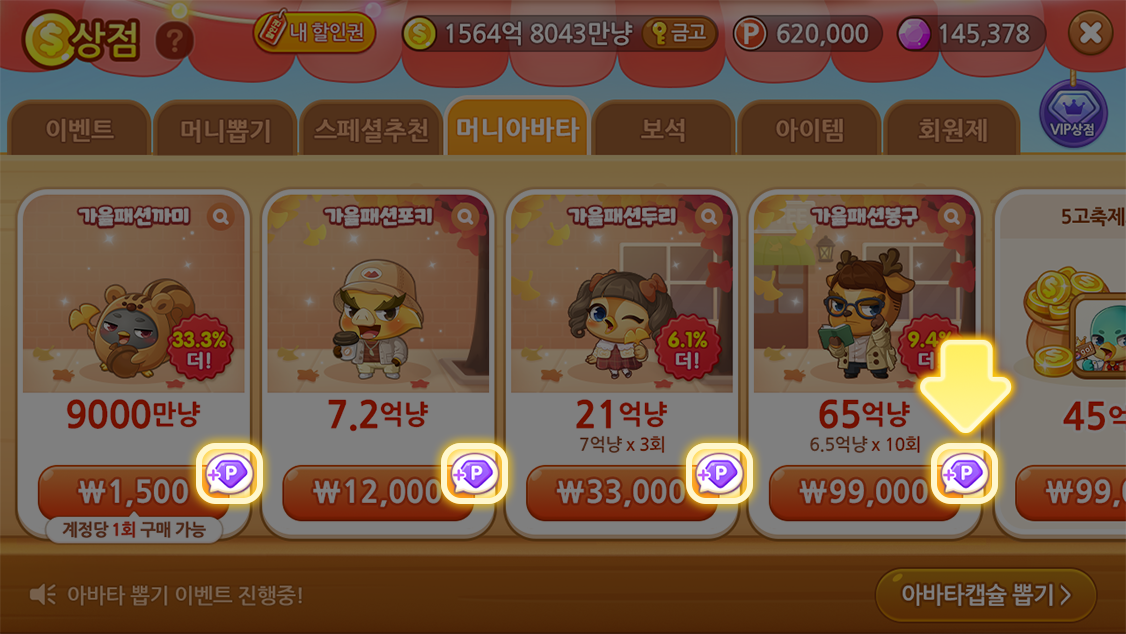 상점 내 VIP 포인트 표시가 있는 상품을 구매 시 VIP 포인트 획득이 가능합니다.